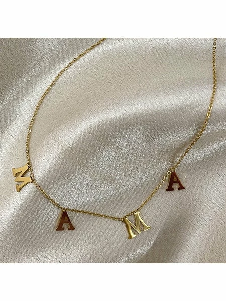 The perfect necklace for the best MAMA. Dainty chain with letter charms spelling MAMA.