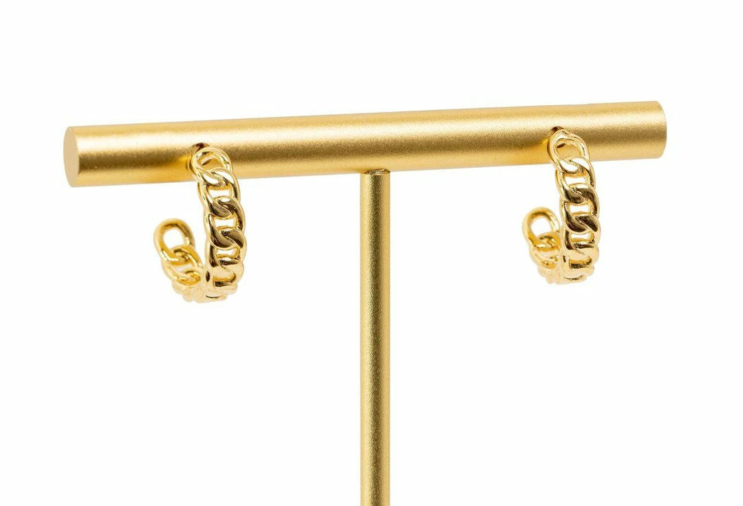 Thin and small hoops designed after our Lexi chain ring and bracelet. These must have chain gold hoops have a soldered chain in a beautiful gold finish with a post back.