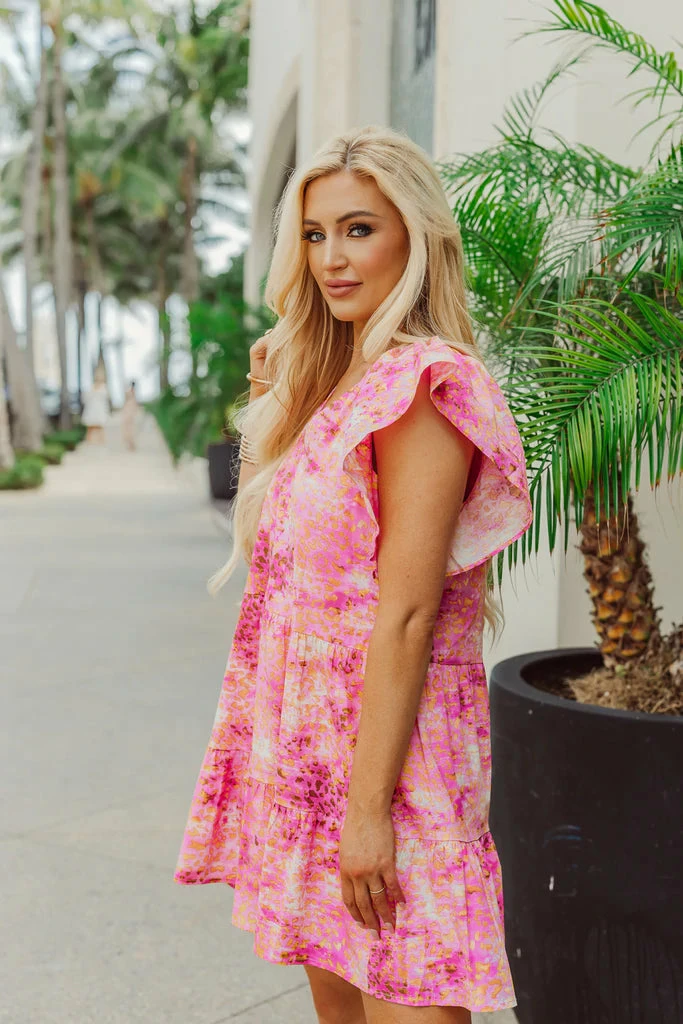 This dress has us feeling flirty and flawless! The Ronnie dress features a v neckline, short flounce sleeves, tiered layers, a flowy silhouette and mini length. Pair with flat sandals for an effortless look, or dress her up with heels and chunky jewelry. Perfect for all of those upcoming Summer occasions! Colors: light pink, dark pink, olive, and yellow.