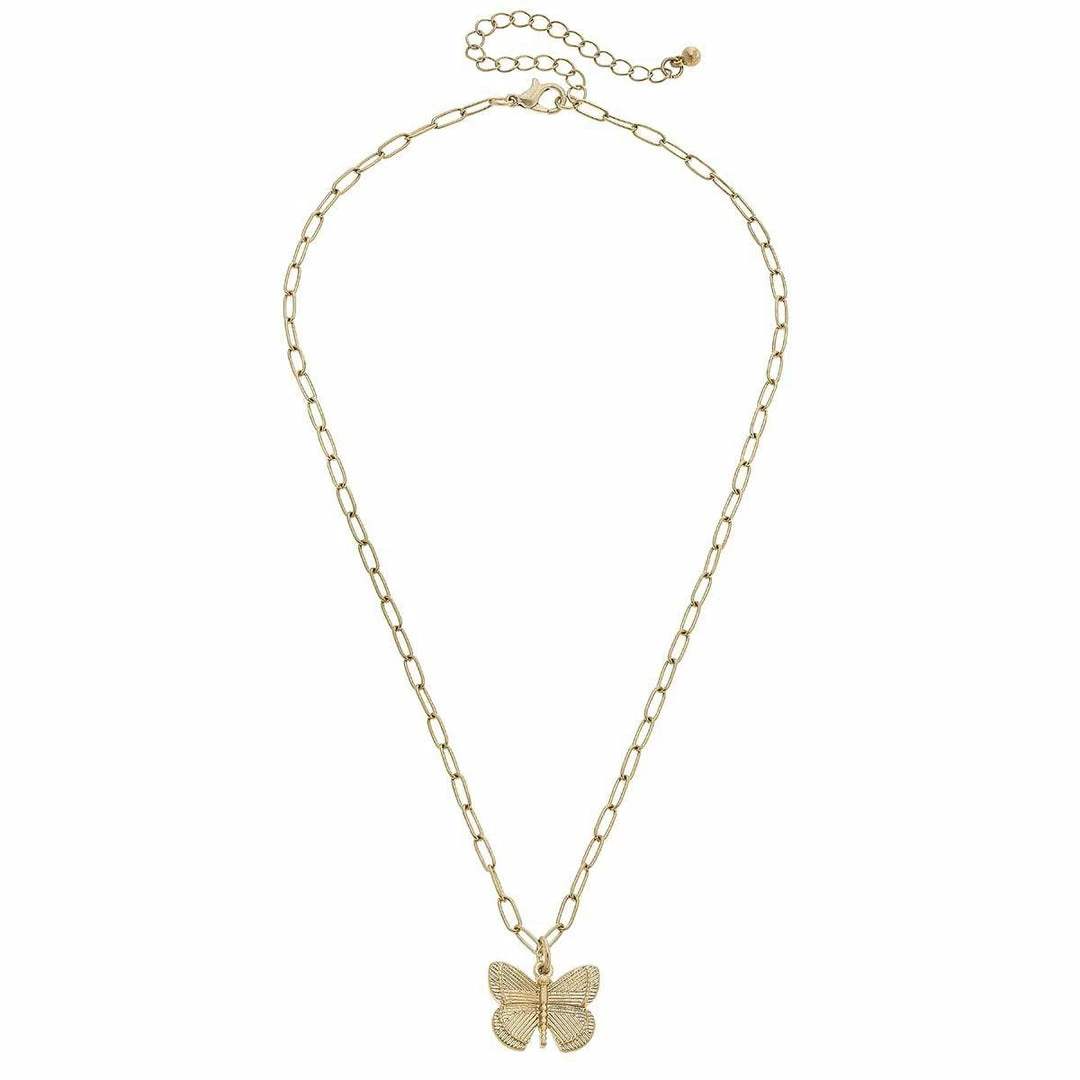 Canvas Celeste Butterfly Charm Necklace Worn Gold