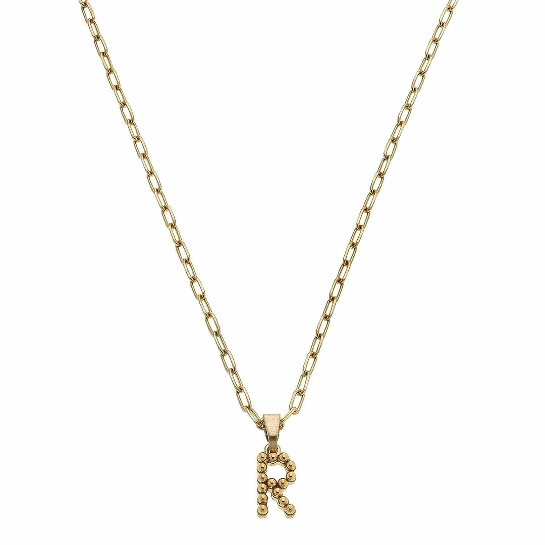 Canvas Layla Ball Bead Initial Necklace Worn Gold