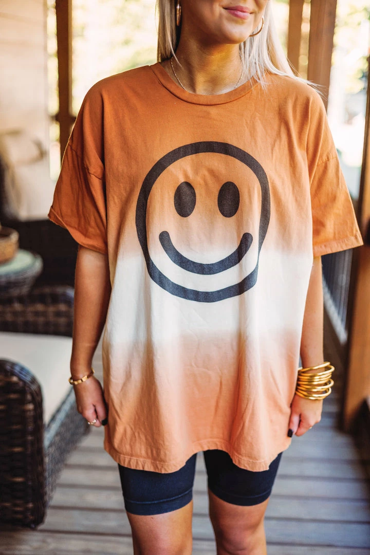 How cute is this oversized tee/dress. Love this smiley face t shirt worn as a dress with white cowboy boots or cut the bottom hem and wear with your denim shorts.