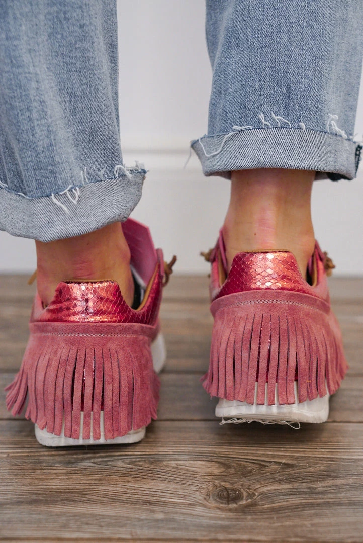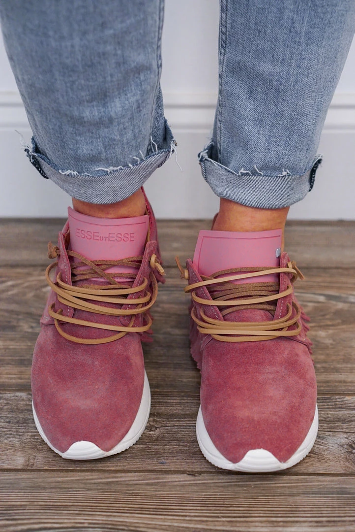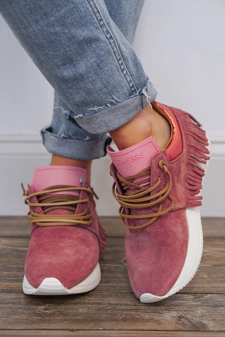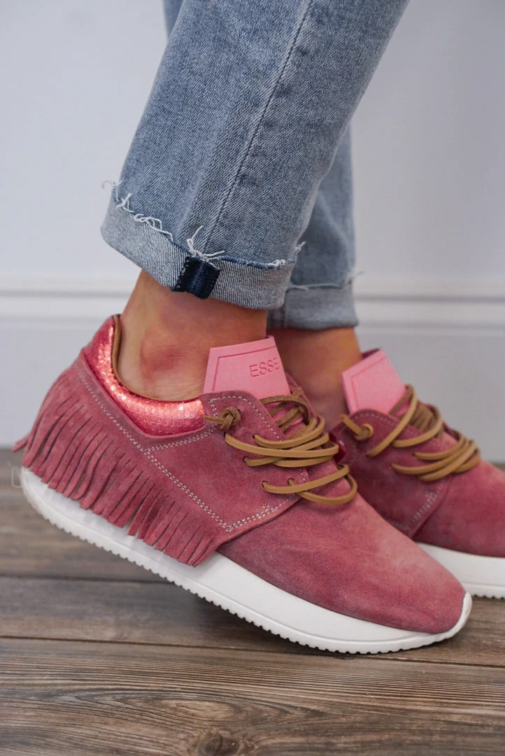 Esseutesse Strawberry Kiss Suede Fringe Sneakers