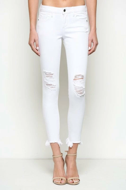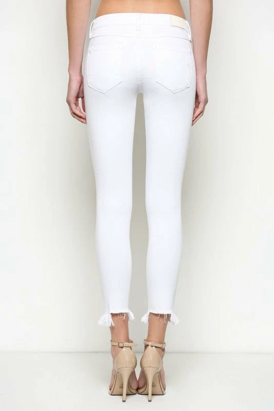 These distressed skinny jeans from Hidden Jeans are a must-have! We Love the white denim, with the raw uneven hem. So cute! Pair with your favorite bodysuit or graphic tee for a super trendy look!
