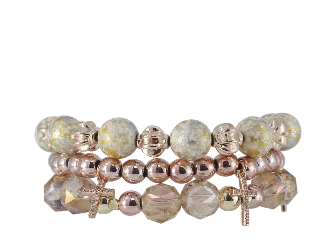 Erimish Cross Starter Stack Bracelets Rose Gold