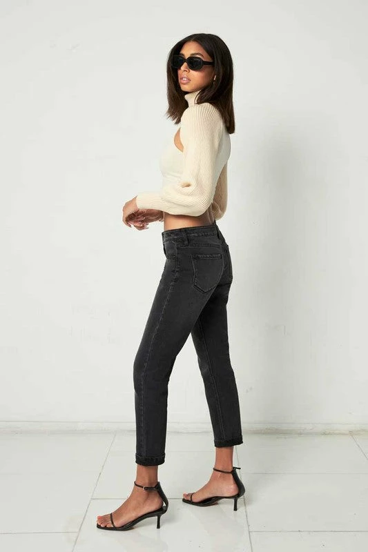 These trendy jeans are such a must-have style for any season! Features a retro 90’s straight leg design in a dark grey wash to give it that next level of style. Five pocket denim style, with button and zip closure.