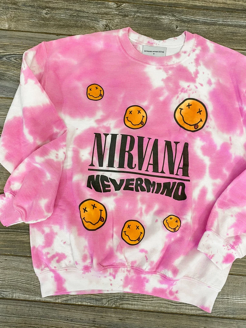 Pink tie dye Nirvana NVM crew sweatshirt.