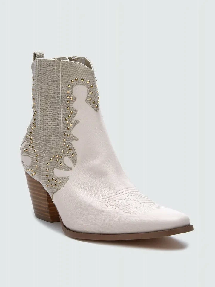 MATISSE Off white western boot with tiny stud detailing is one of our new faves!! You can pair this trendy cowboy bootie with everything all season long.