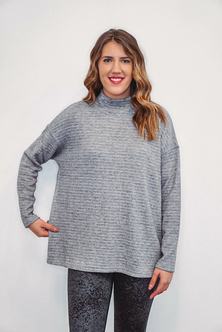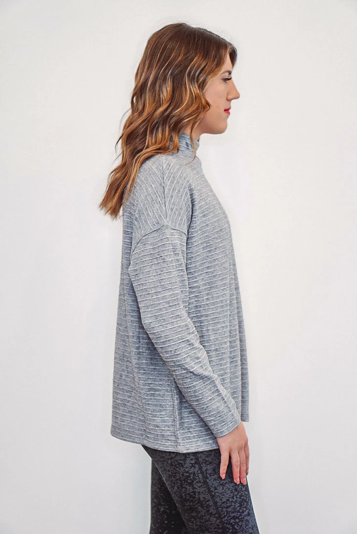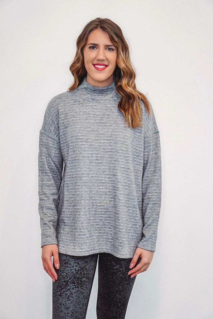 Mono B charcoal grey mock neck striped long sleeve ribbed pullover