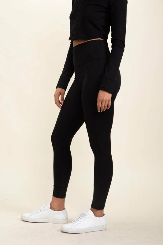 No side pockets, no back zippered pouch, just straight-up, good ol` essential full-length, eco-friendly leggings with the Mono B signature high waistband for abs support. The perfect addition to your personal Mono B collection!