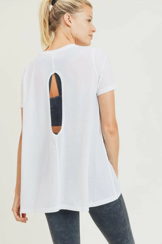 This longline top is perfect to layer over your Mono B activewear. The four-way stretch, striped mesh fabric gives coverage whilst keeping keeping you cool during your activities. The keyhole cutout on the back is both functional and flirty.