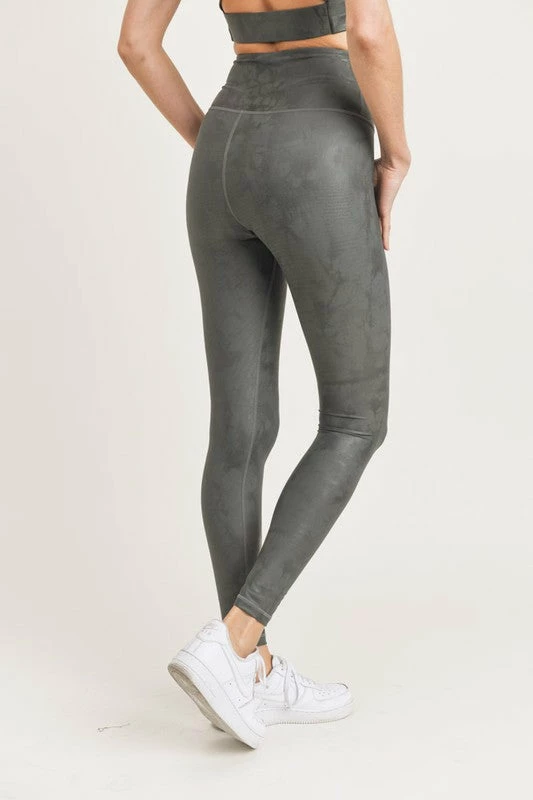 Mono B overlay metallic foil print high waist leggings in gun metal
