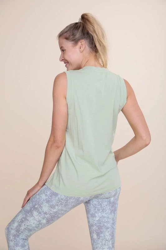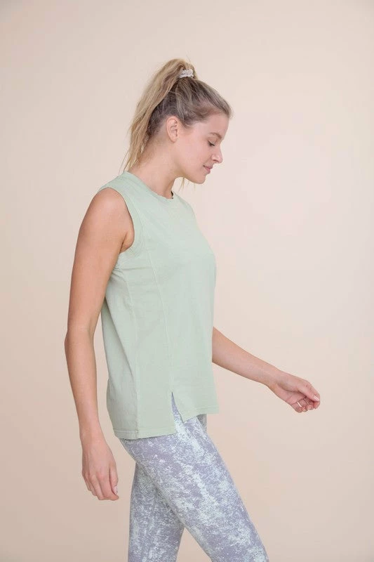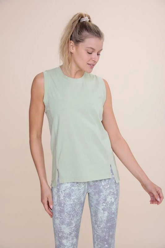 Mono B sage sleeveless top with split hem