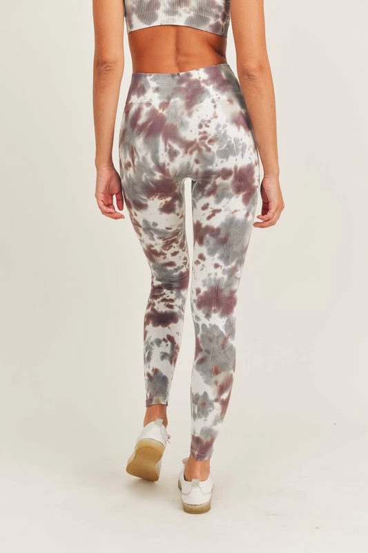 Mono B seamless ribbed tie dye leggings in grey, eggplant, brown, and ivory