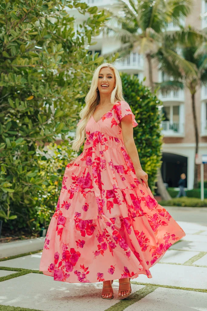 Looking so good has never been so easy with the Jules dress! Featuring a v neckline, short flounce sleeves, pockets, and flowy tiered layers. This babe is perfect for all of your upcoming special summer events! Colors: light pink, dark pink, magenta and orange.