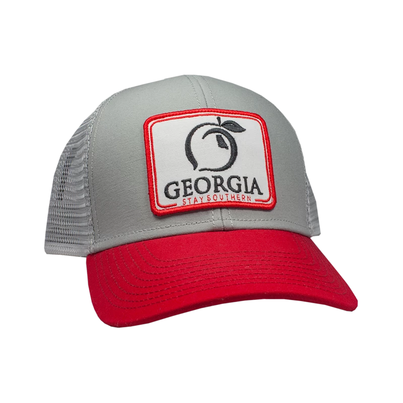 The Georgia Patch Mesh Back Hat is crafted from high-quality canvas weave. Similar to the State Patch Mesh Back, the Georgia Patch Mesh Back Hat comes in multiple colors and contains a woven patch featuring the Peach State Pride logo.