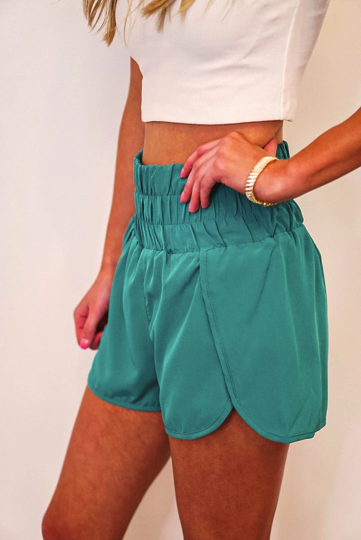 Kelly green elasticized high-waist active shorts