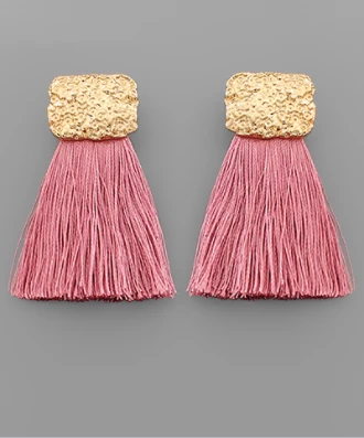 Wedding season is here – these classy earrings will pair perfectly with your new fall dress! Earrings feature a gorgeous mauve color and gold textured design. Available in 3 colors here!