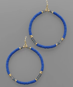 Beaded hoops are a must have this season! We are loving this blue rubber and glass beaded pair. They are closed hoops, and feature gold bead accents. So pretty!
