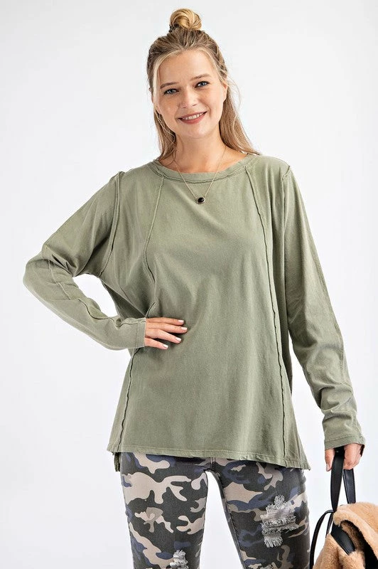 We are having all the love for this boxy knit pullover top! So comfy, and super cute, featuring mineral washed sage knit, crew neckline, raw seam details, long sleeves, and side slits in the bottom hemline for added comfort. You will love how great you feel in this babe, while running errands, hanging out with friends, or enjoying a much deserved day off. Soon to be your new favorite go-to!