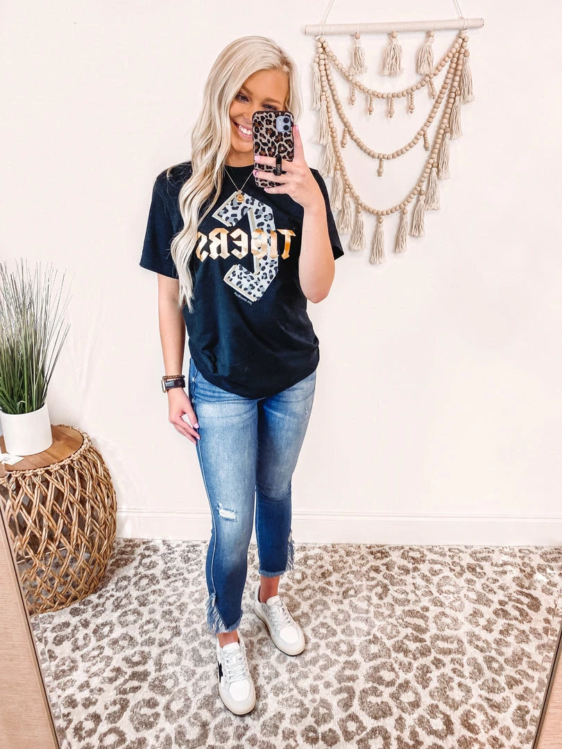 Cheer on your favorite Commerce Tigers in the cutest graphic tee! Top features a C tigers in gold foil!