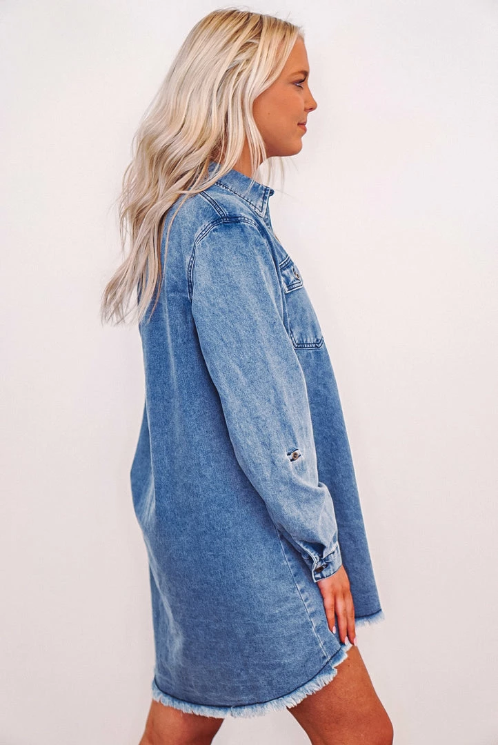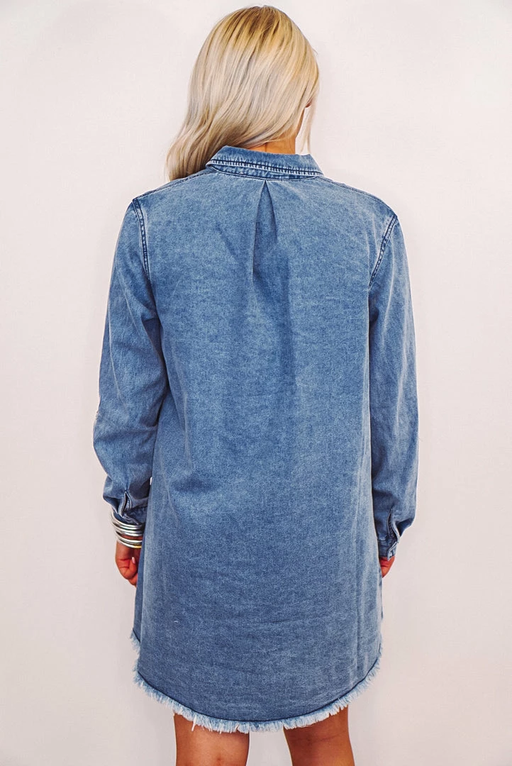 Oh my denimness! This one is sooo CUTE!! Featuring medium washed denim, button front closure with collar, two front chest pockets, and raw bottom hemline. She’s a comfy relaxed fit, and perfect for the upcoming seasons! Just throw on your wedges and chunky earrings for a dressier look, or your fav boots and hoops for all of those Summer concerts!