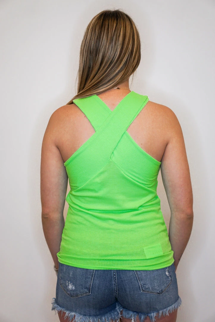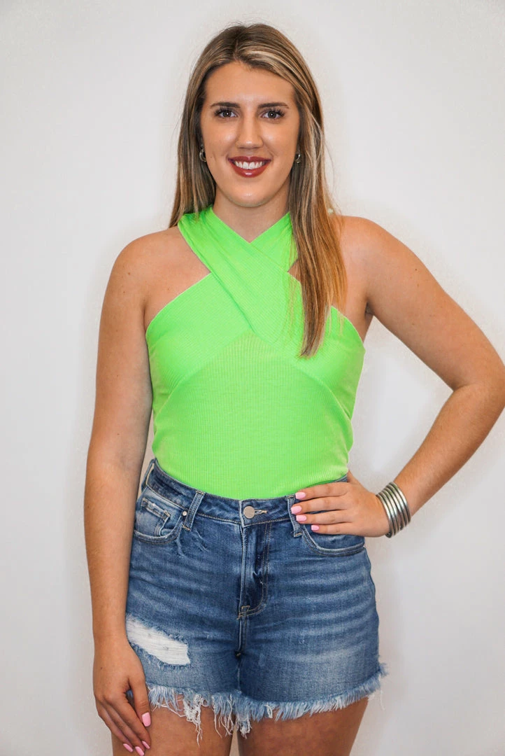 We can hear Summer calling with this super cute halter tank top! Featuring a criss cross banded neck in front and back, and lightweight ribbed fabric. You can easily dress this baby up or down. Perfect for all of those hot Summer days!