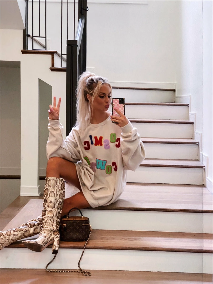 Distressed Vintage Couture Cosmic Cowboy crewneck sweatshirt.