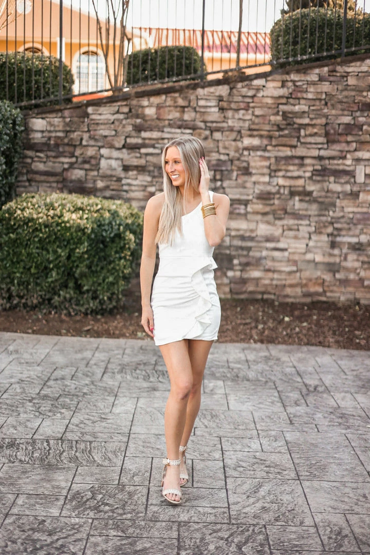 This is the must have dress of the season!! We are loving the one shoulder look especially with the fitted bodycon style. Featuring an elegant ruffle down the side on the front, and a hidden side zipper with hook and eye closure. Absolute perfection!