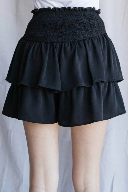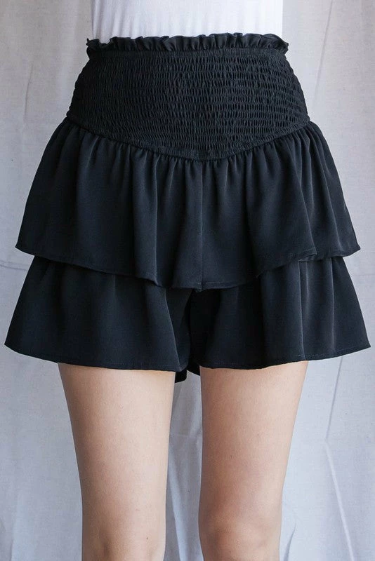 Oh my, we are in love!! These black flowy shorts are soooo cute! Featuring flowy ruffled layers, and fitted smocked high waistline with a ruffle detail. Such an adorable combination! They are lightweight, and super comfortable. Dress these babes up for a date night, or Sunday brunch. We know you’re going to love them as much as we do!