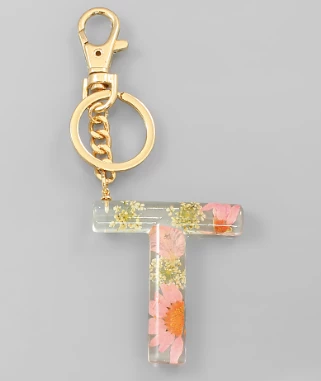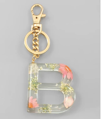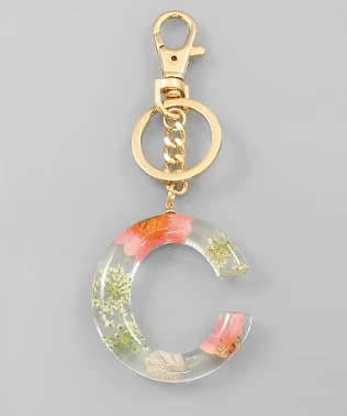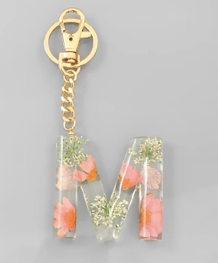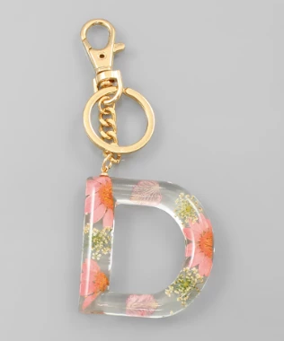 Such a cute keychain! Clear initial with a pressed pink flower inside. Perfect for your keys during those fun Summer drives!