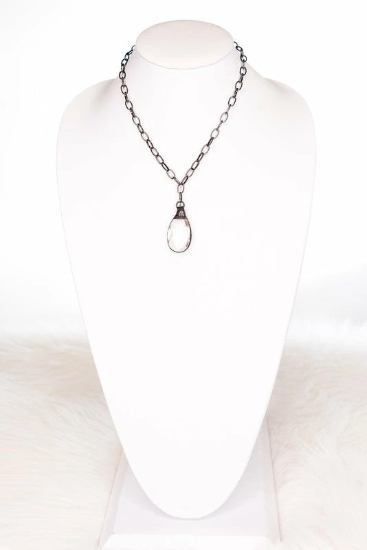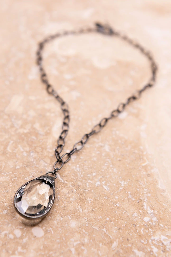 Chain link necklace with crystal teardrop pendant. Perfect layering necklace.