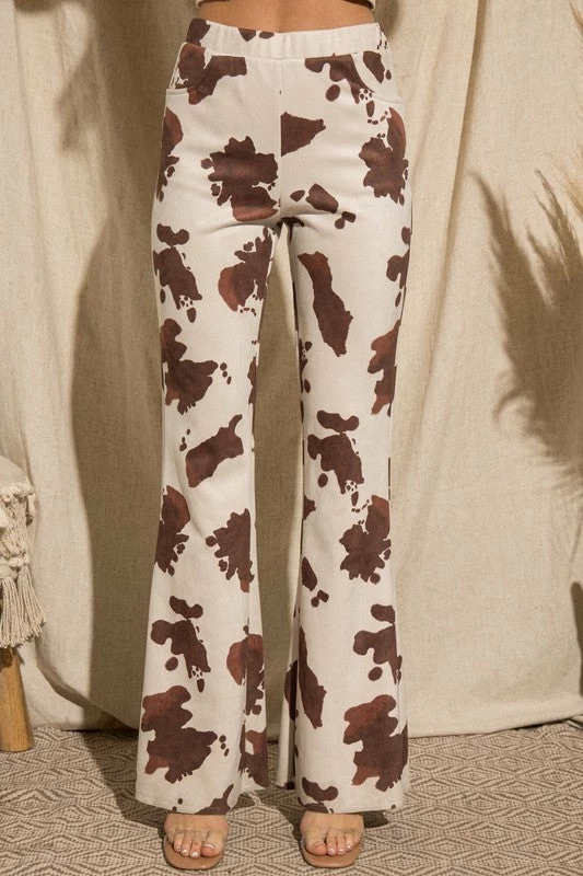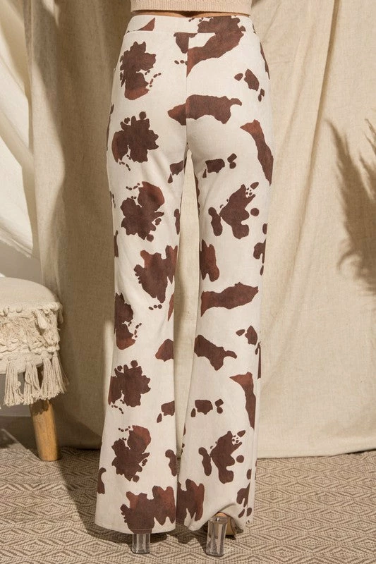 We love everything about these super cute cow print flares! These babies are high waisted pants in brown and cream cow print with a flattering flared cut. Featuring a suede like feeling fabric, elastic waist, side zipper with hook and eye closure, and front and back pockets. So CUTE! Perfect for all of those upcoming concerts and festivals!
