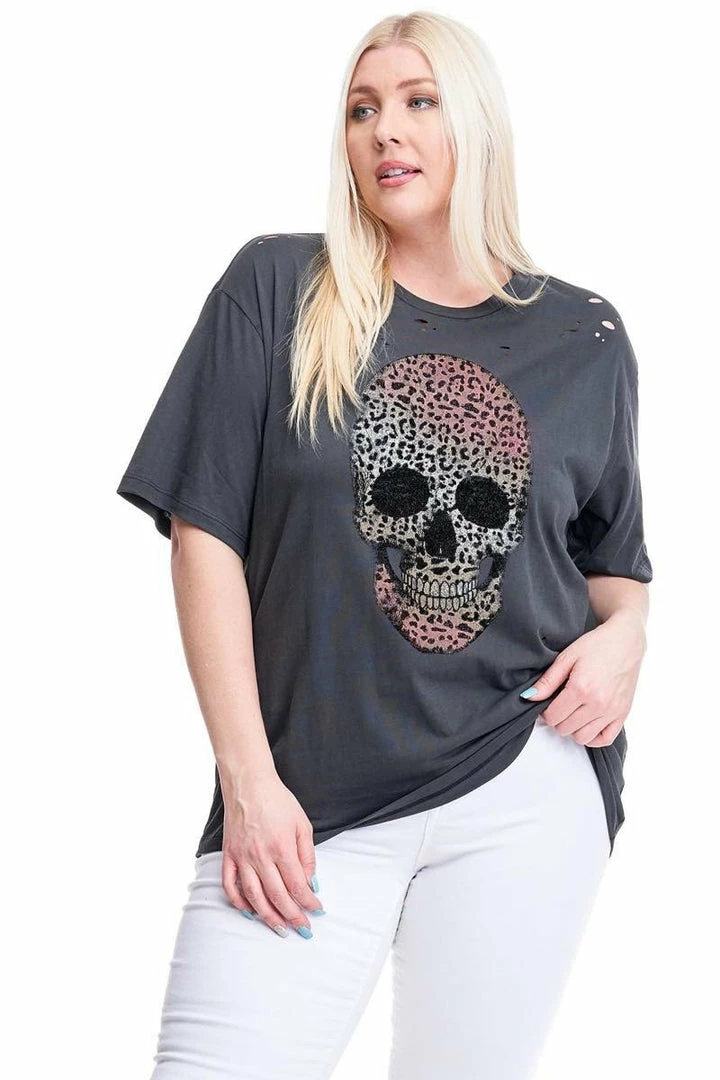 Women’s Plus Sizes Leopard Print Skull Graphic Tee