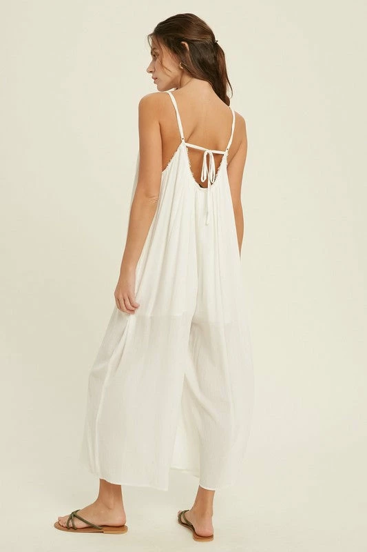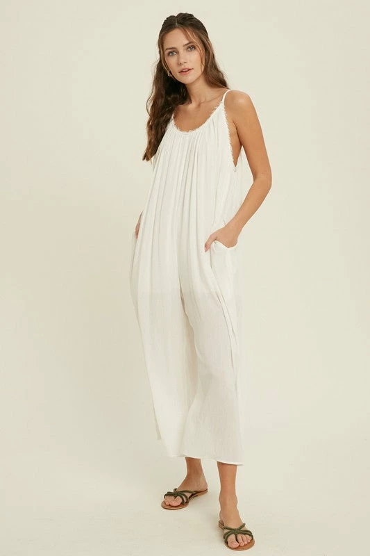 Ivory loose fit jumpsuit with adjustable spaghetti straps