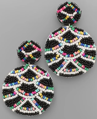 Multi color beaded earrings with black and white wave pattern