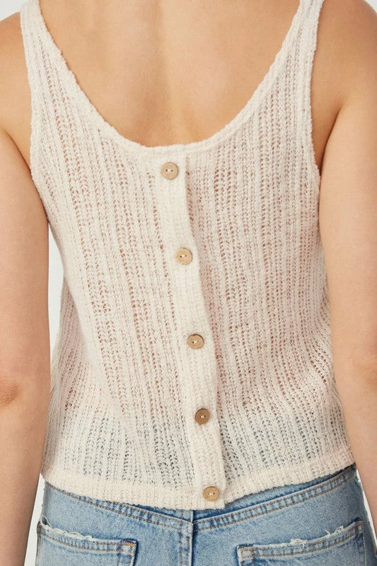 Such a perfect top for Summer! Loose knit ribbed fabric in a tank top style, featuring a crew neckline in front and back, and the cutest button down detail in back. This babe will be adorable over your favorite bralette! We love love love!