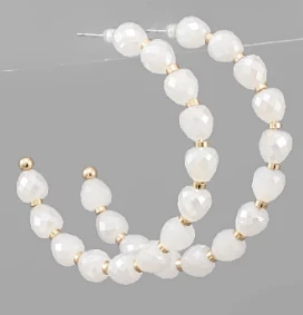 Beaded hoops are a must have this season! We are loving these white glass ball beaded hoops with gold space accents. They are perfect for all of your upcoming events!