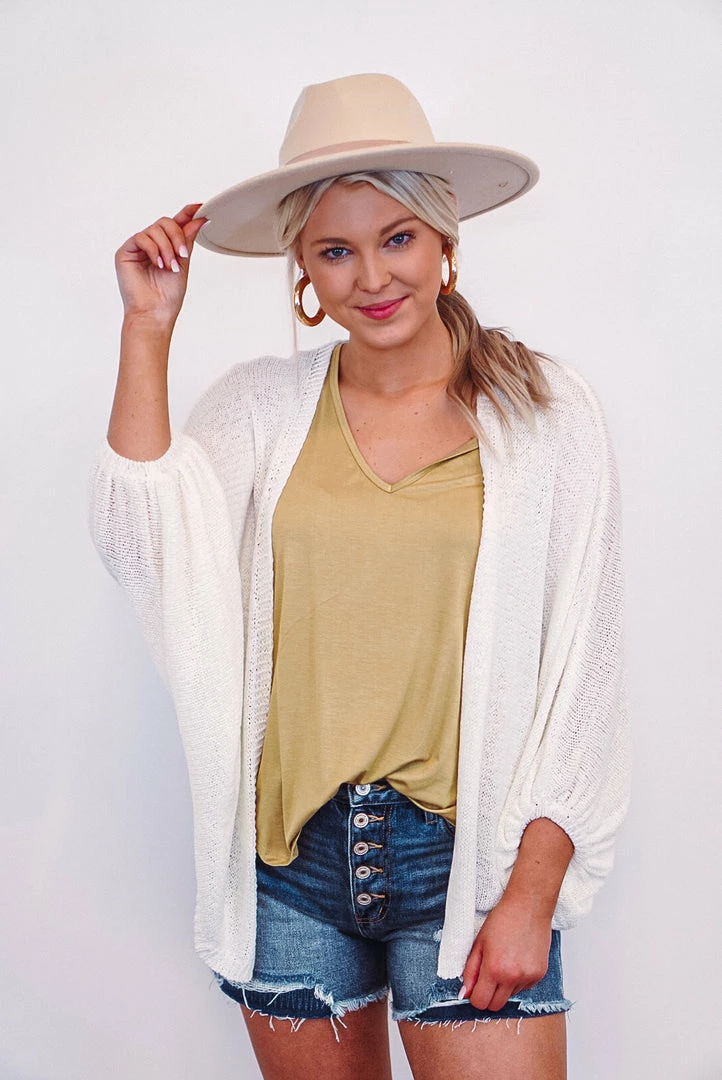 How fabulous is this timeless cardigan? This stylish little number features a leaf motif design in back, and has dolman 3/4 length sleeves. This cozy babe is perfect for those Spring and Summer days, pair her with a simple tee, shorts, and sandals for a cute casual look!