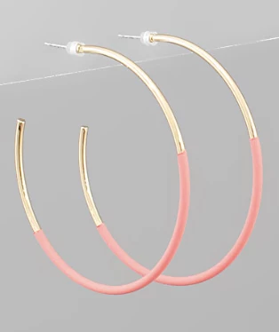Hoop earrings are a must have this season! We are loving these peach half coated gold hoops. They are perfect for all of your upcoming events!