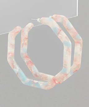 Hoop earrings are a must have this season! We are loving these octagon acrylic hoops in marbled pink and blue. They are perfect for Summer!