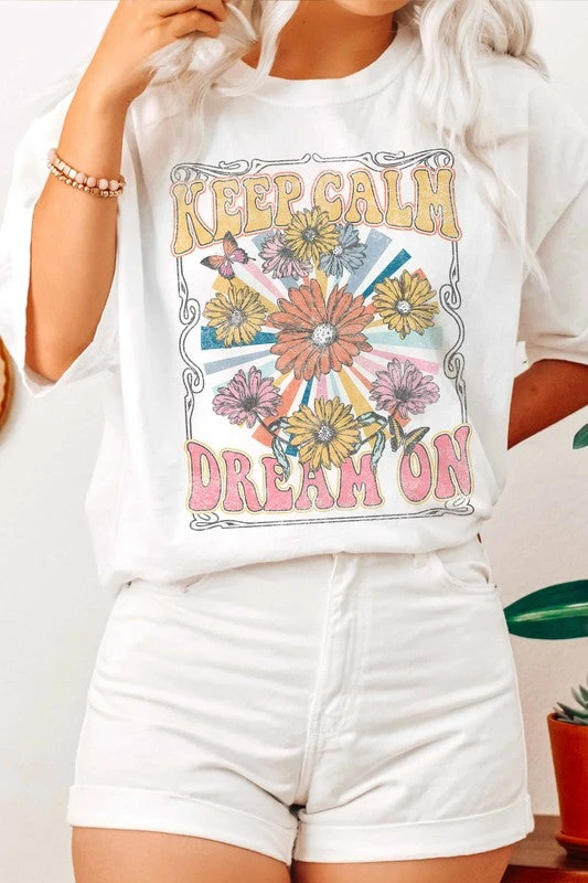 Retro keep calm and dream on graphic t shirt in white
