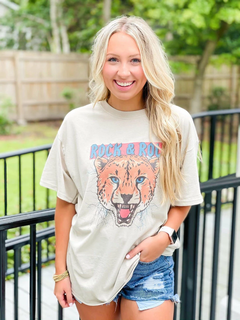 Everyone loves a fun graphic tee!! This tan babe is perfect, featuring a cheetah picture with the words Rock N Roll. So CUTE!! Just add your favorite denim and a pair of boots and you’re set.