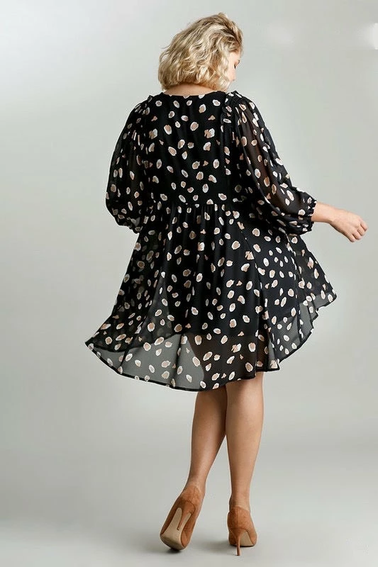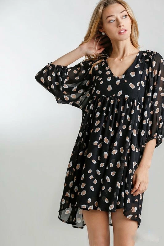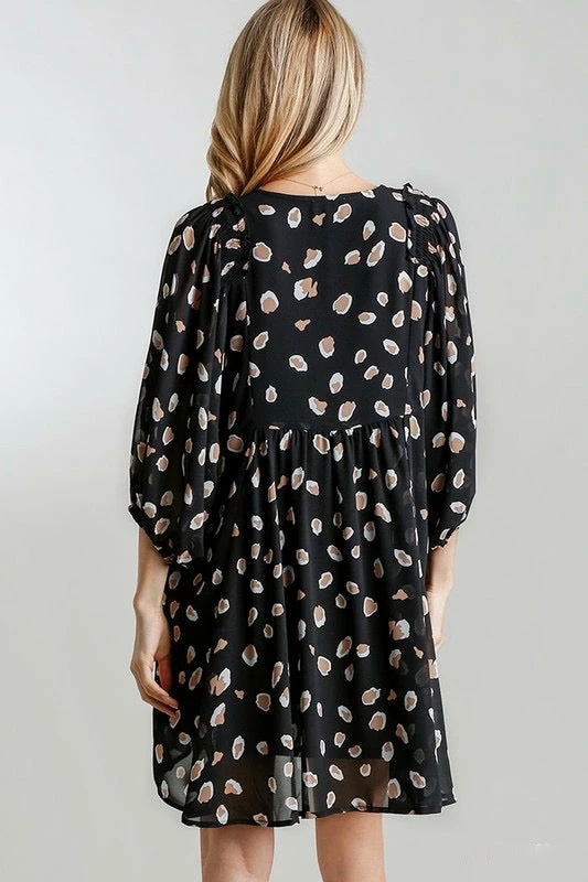 Black Animal Print Babydoll Dress