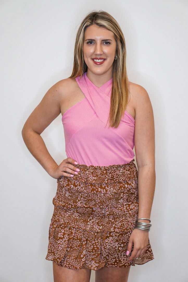 Pink criss cross halter tank top