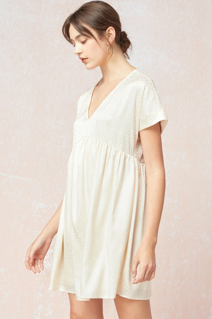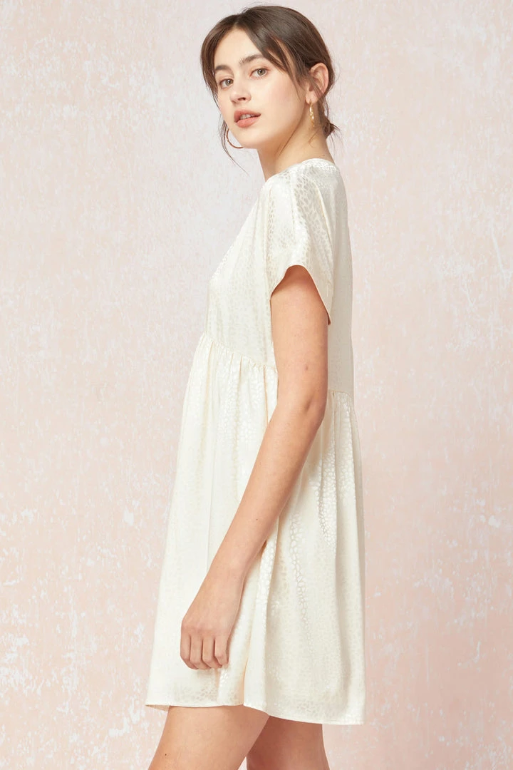 Spotted Ways Cream Satin Babydoll Dress