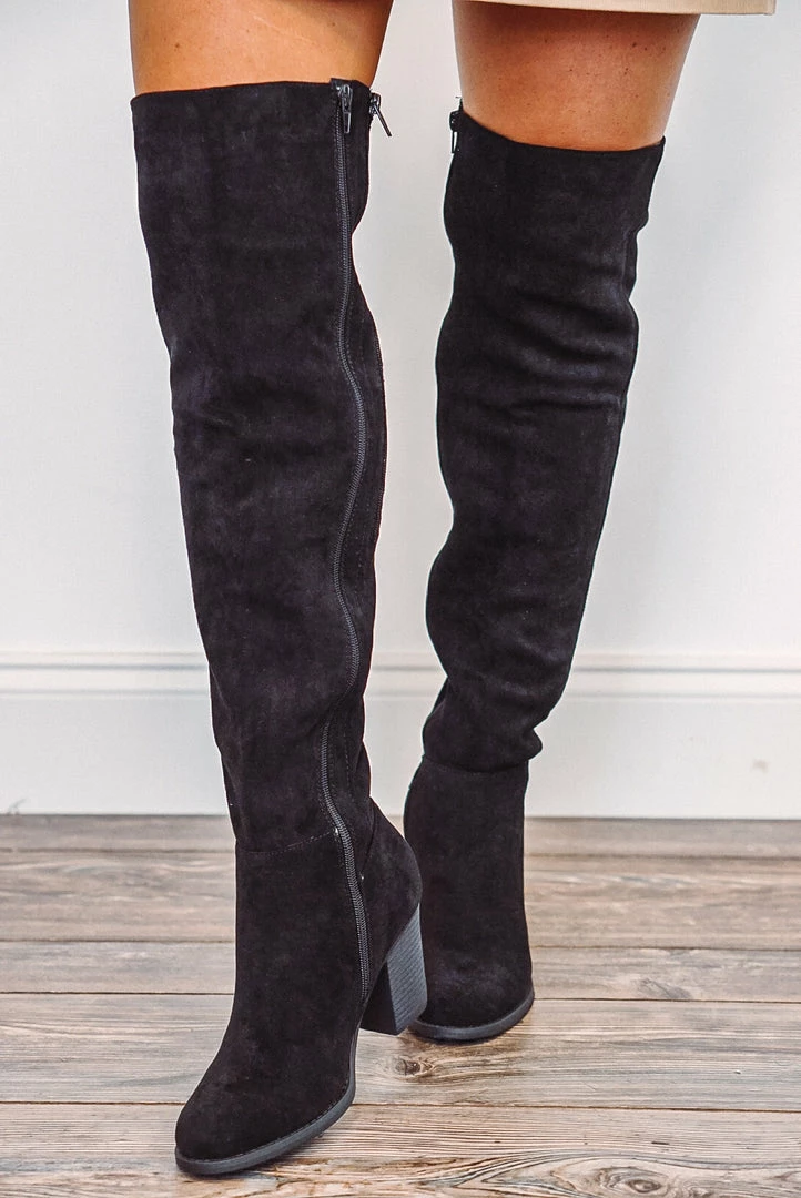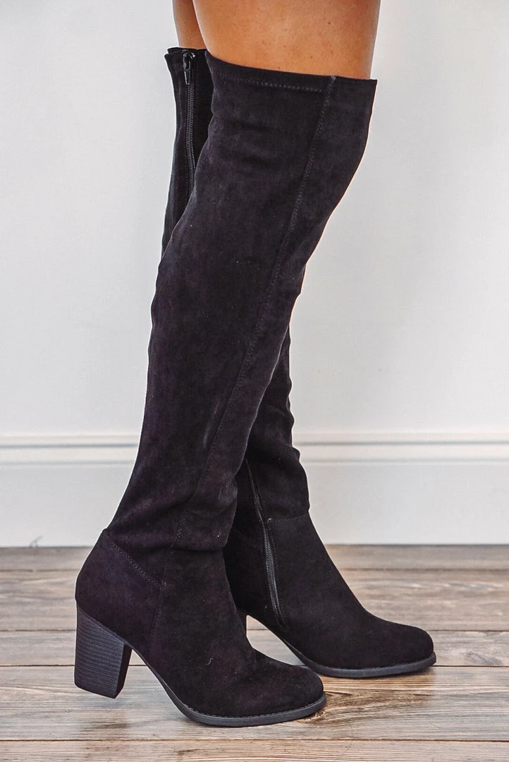 Women’s black over the knee boot.
