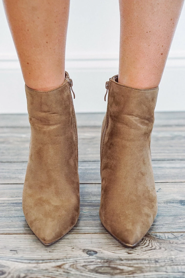 women’s dressy taupe heel ankle booties