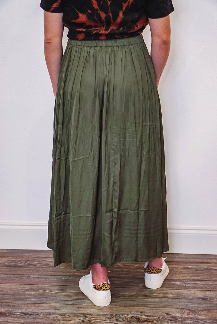 We are in cuteness overload with this adorable maxi skirt! Featuring an elastic waistline, side pockets, and slits on each side of the bottom hemline. The perfect skirt, simple yet so pretty!