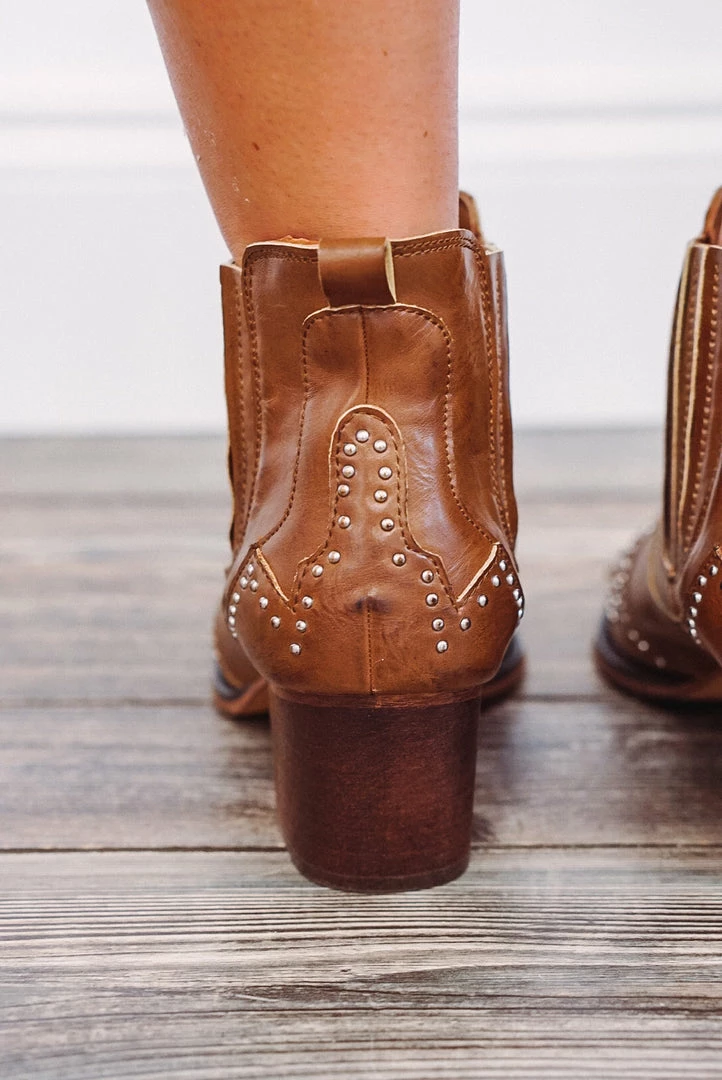 Brown western studded ankle booties.